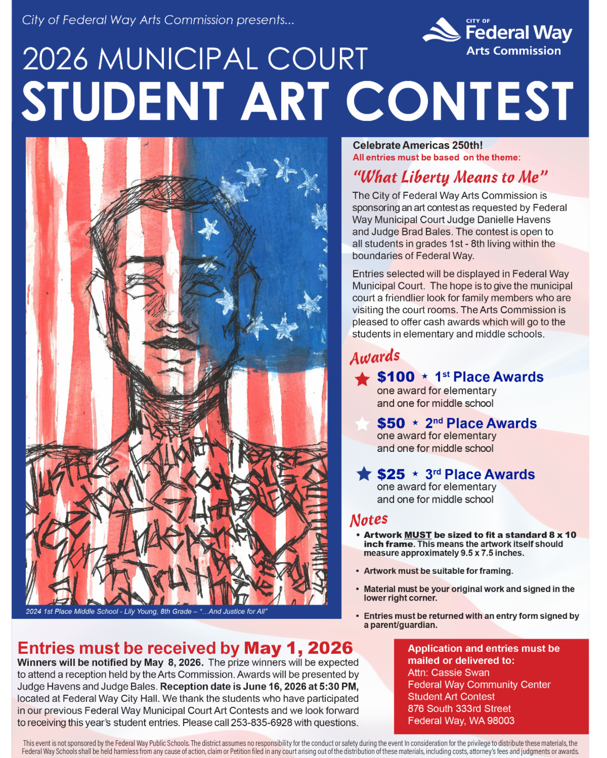 The contest is open to all students in first through eighth grade living within the boundaries of Federal Way.
