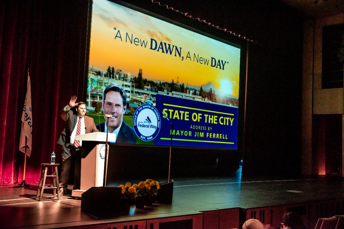 Mayor Jim Ferrell’s State of the City Address was held at the Performing Arts and Event Center last Thursday. Federal Way stands at the threshold of growth, uniquely positioned to become a driving economic force in South King County in the years ahead.