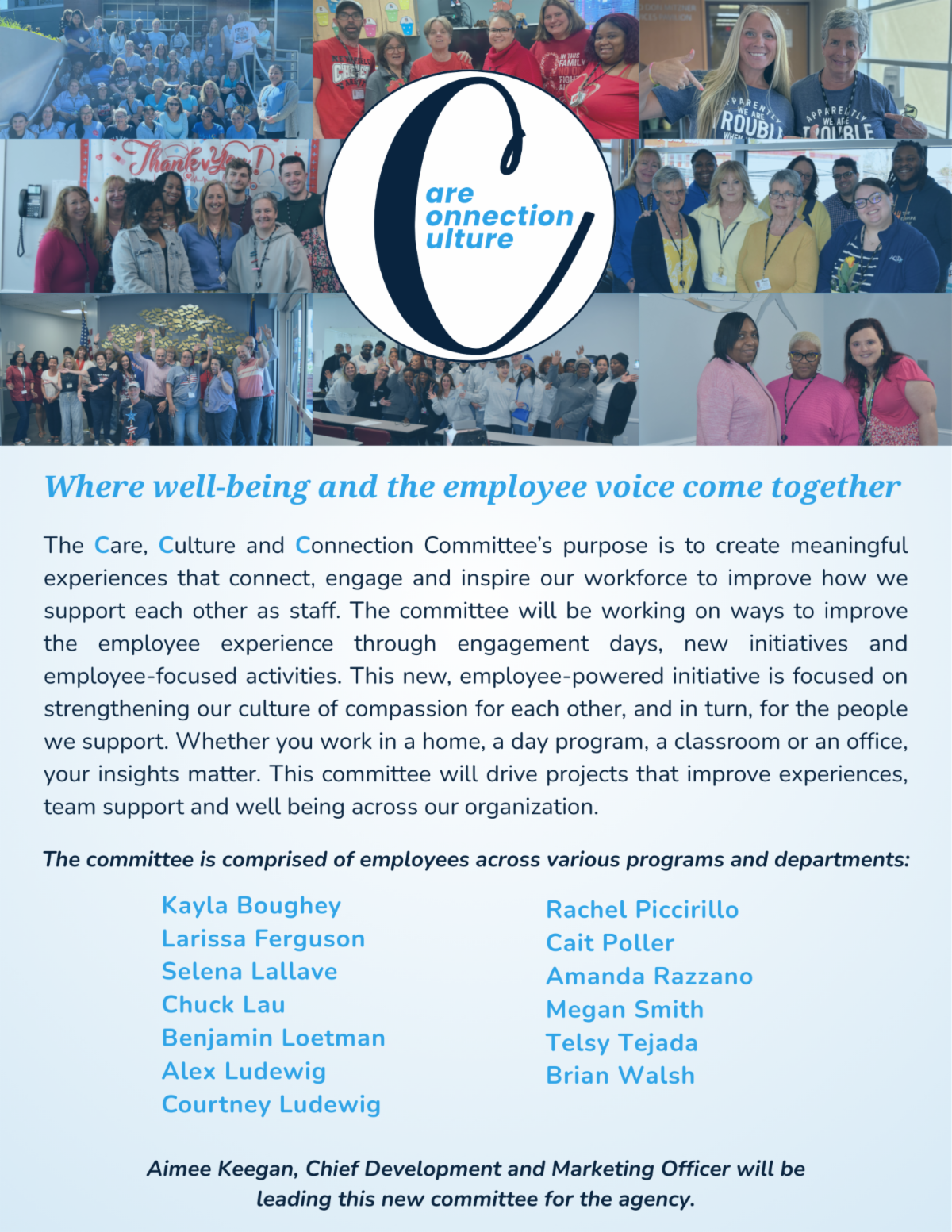 Welcome to February! With this new month, we are thrilled to bring you some exciting new information on our employee engagement committee. For many years ACLD's Organizational Care Committee has provided our organization with opportunities for unity, growth, camaraderie and fun. We are grateful to the committee members of Organizational Care for all of their enthusiasm and support over the years. In this first quarter, we are thrilled to bring you our reimagined employee engagement committee called the Care, Connection and Culture Committee (C3.) In this edition of Limelight, you will learn a little more about the new committee, see photos from their first employee engagement day, read about their mission and how our organization will benefit from their work.