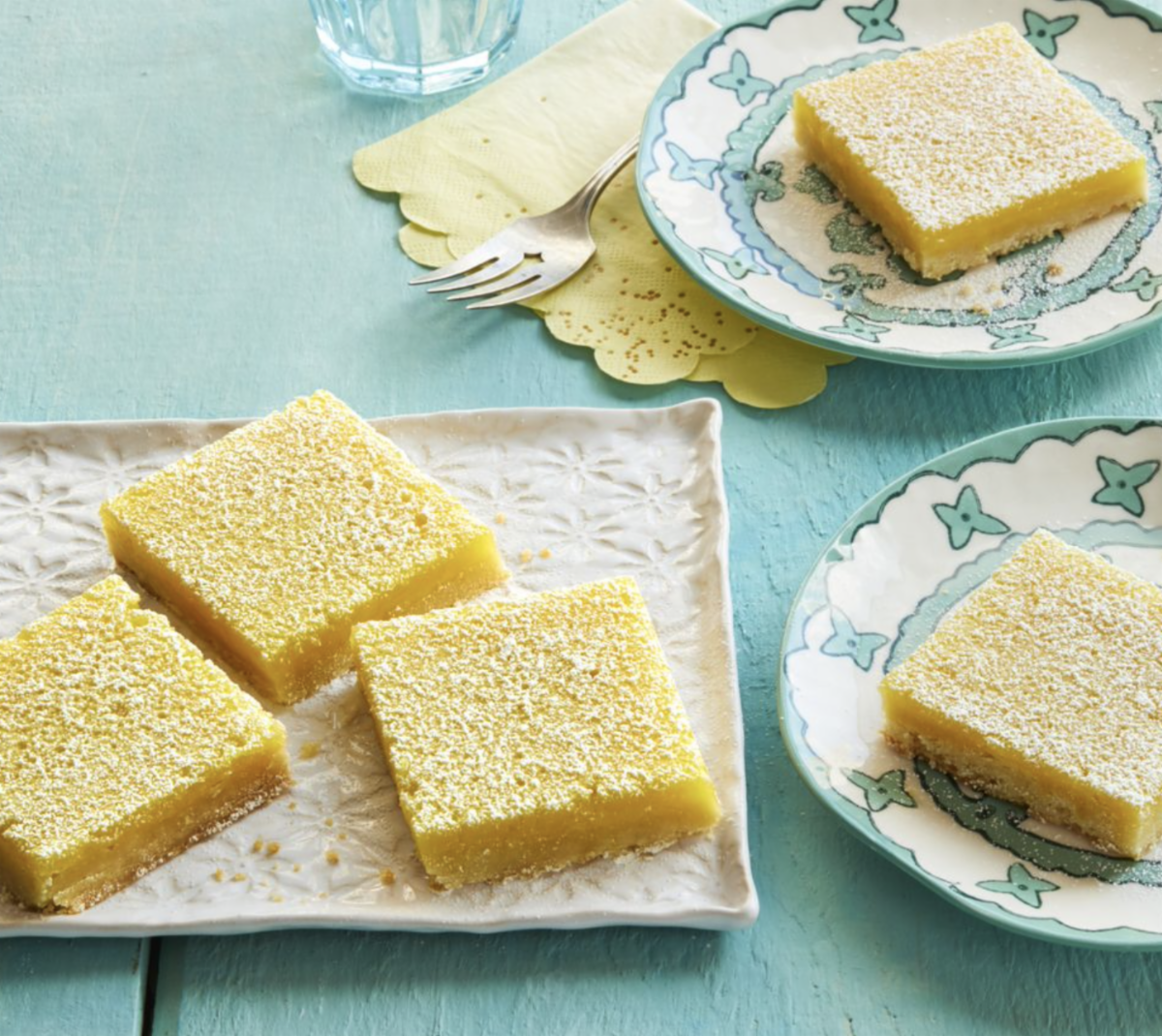 Allow to cool in the fridge for a minimum of 2 hours, then sift powdered sugar over the top before cutting into squares.