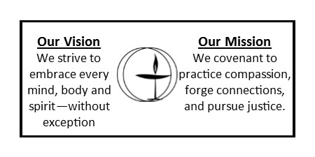 | We are a liberal religious community that embraces diversity and respects the inherent worth and dignity of every person. ALL are welcome here, no matter their race, class background, sex, sexual/affectional orientation, gender expression, or ability. Please visit us on Sunday mornings at 11 a.m. for our worship service--- we'd love to see you! |