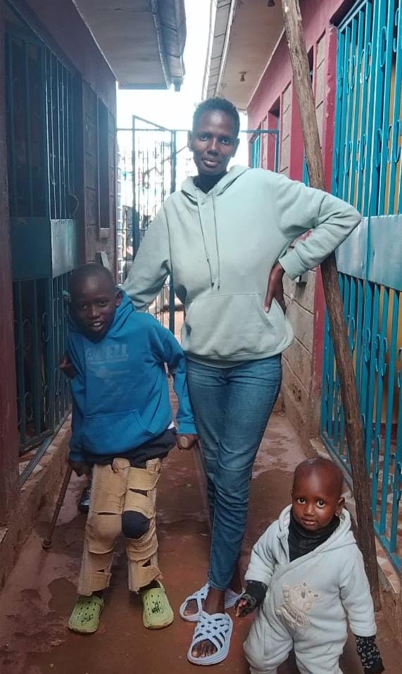 Wayne is a 9 year old boy with hemophilia from Kenya, who has been in our sponsorship program since 2022. Wayne is pictured below with his mother, Mary, and his little brother. Mary is a single mother, taking care of both boys. Irene Kalekye, the program manager of Jose Memorial Hemophilia Society, shared their story: