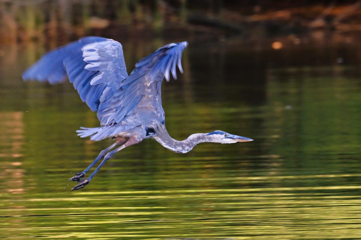 "My husband and I were out for an evening cruise on our boat. We love coming into the little cove off Harness Creek at the park to just sit quietly and watch the wildlife as the sun sets. This particular evening did not disappoint, as we came upon this beauty as he flew in, enjoyed a little snack and flew out!"