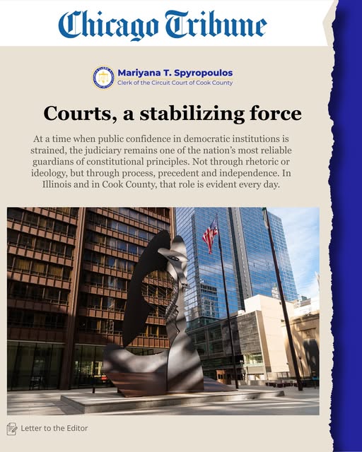 I recently shared my perspective in the Chicago Tribune on why the judiciary remains a stabilizing force, especially at a time when trust in public institutions matters more than ever, and how the work happening in Cook County helps strengthen transparency, accessibility, and due process.