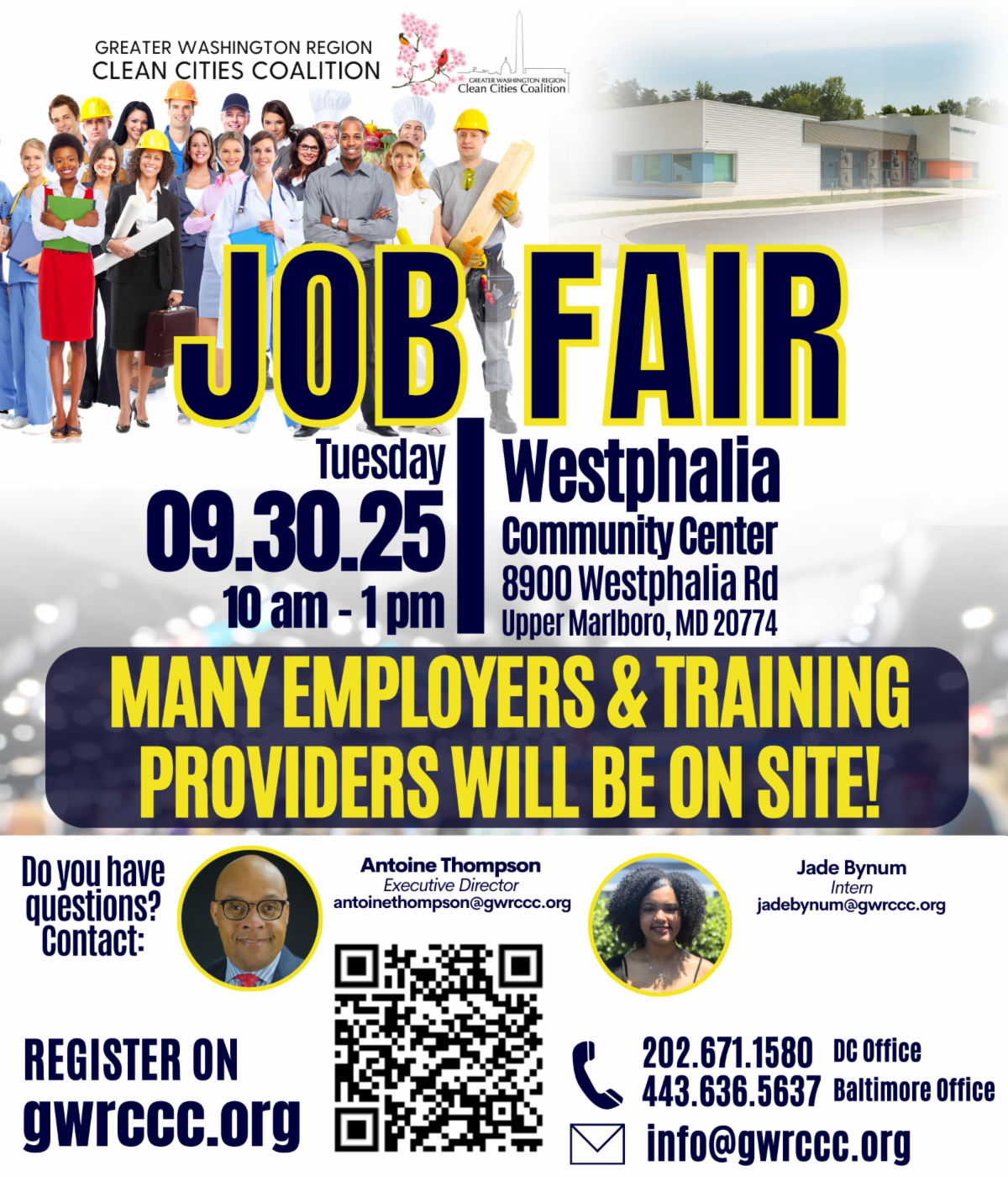 Join the September GWRCCC Job Fair in Upper Marlboro, MD where many employers and training providers will be on site!