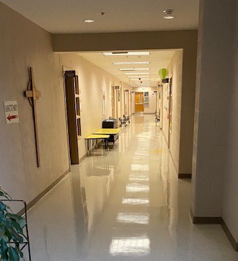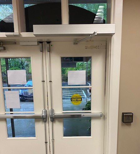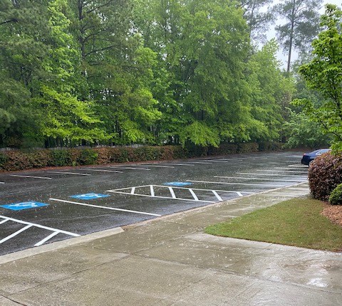 APC's Property Manager Gene Casey shared some photos this week of completed projects during the past few weeks, including the installation of three new handicapped accessible doors (two in the small lobby with the grey awning near the nursery playground; and one at the APC Dayschool entrance door in the education wing), newly painted parking lot lines, cleaned and polished VCT and stone tile floors, pressure washed sidewalks, and a new coat of paint in the choir bathroom. The church's cleaning team has used the "low traffic" opportunity to do some deep cleaning projects on our windows, sanctuary pews and chairs, choir room chairs and Fellowship Hall tables.