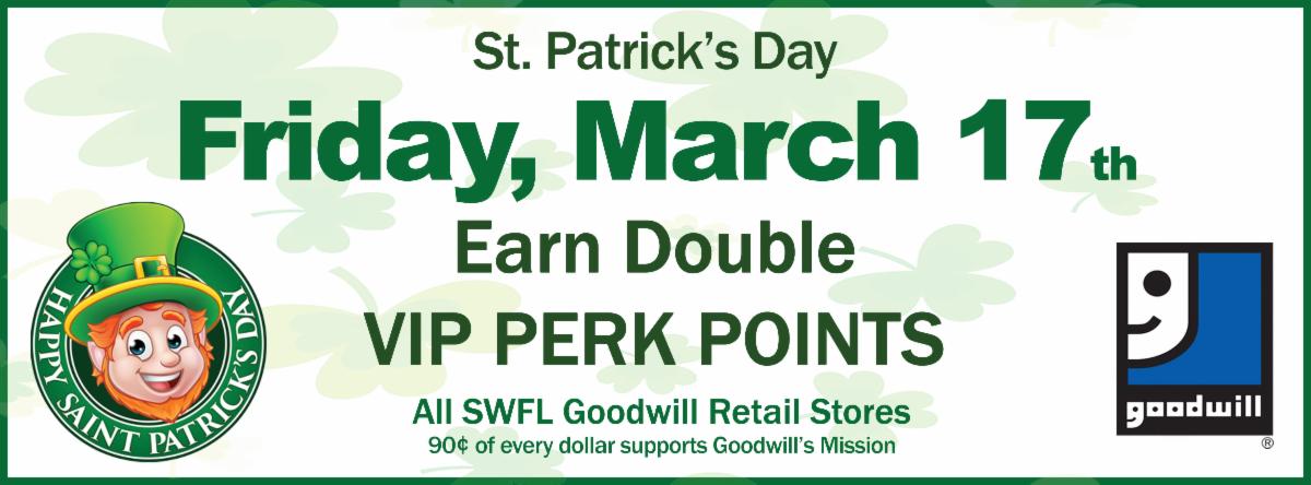 Goodwill VIP Perk members get DOUBLE POINTS on St. Patrick's Day, March 17th | |
