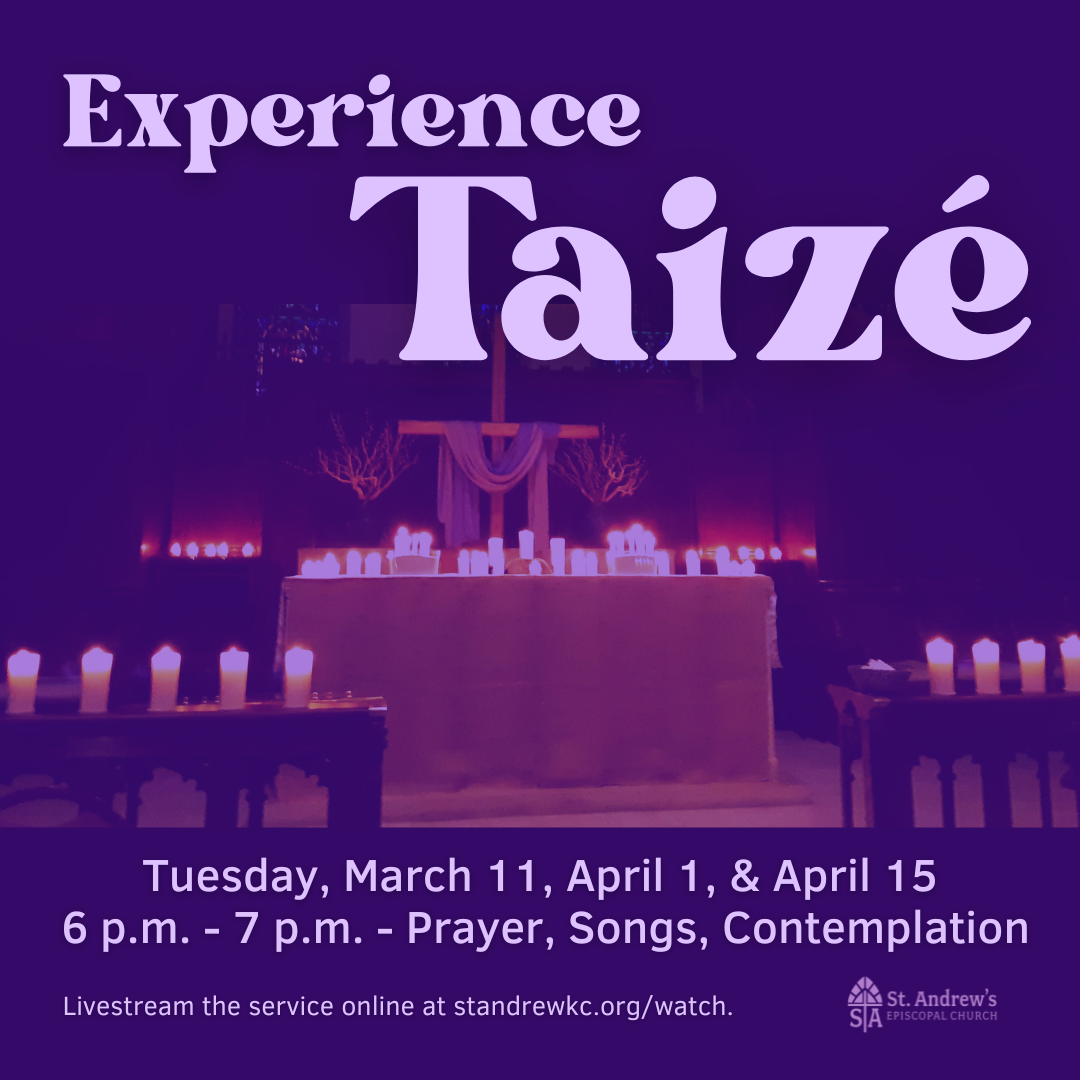 - Join us for Taizé worship, which includes prayer, simple music, a time for silence, and inspirational readings. All Taizé services are held Tuesdays at 6pm at St. Andrew’s on March 11, April 1, and April 15.