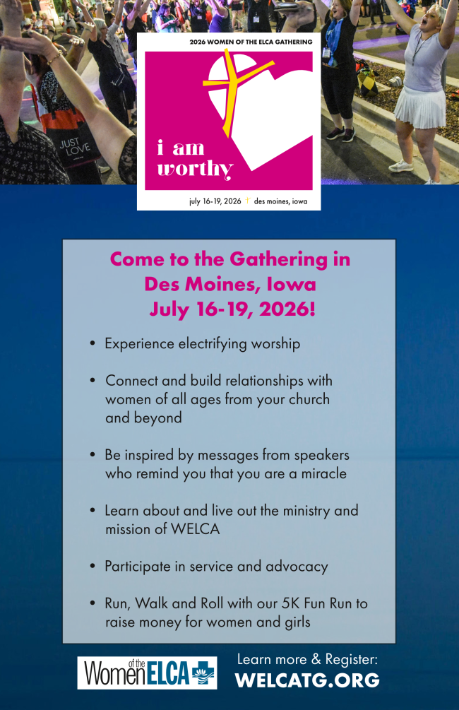 The Women of the ELCA Triennial Gathering takes place every three years and gathers 1500-3000 women leaders, participants, and newcomers for four days of worship, inspiring speakers, workshops, service projects, and more!