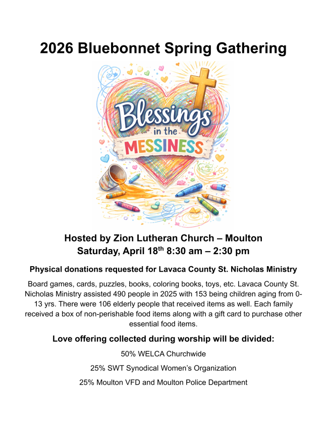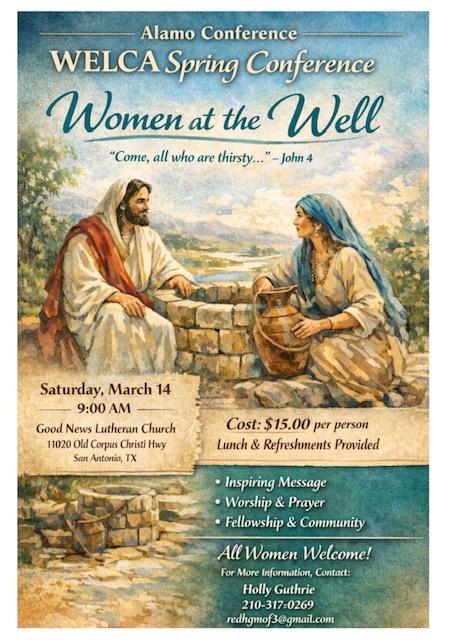 Mark your calendars for the Southwestern SWO Convention, coming to San Antonio, Texas, October 16–18, 2026. Women from across the synod will gather for a meaningful weekend of worship, learning, fellowship, and shared purpose with a little business thrown in.