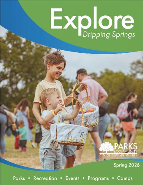 The Spring 2026 edition of Dripping Springs Parks and Community Services guide, Explore, is available now! We've got tons of new programming and events coming up for kids and adults.