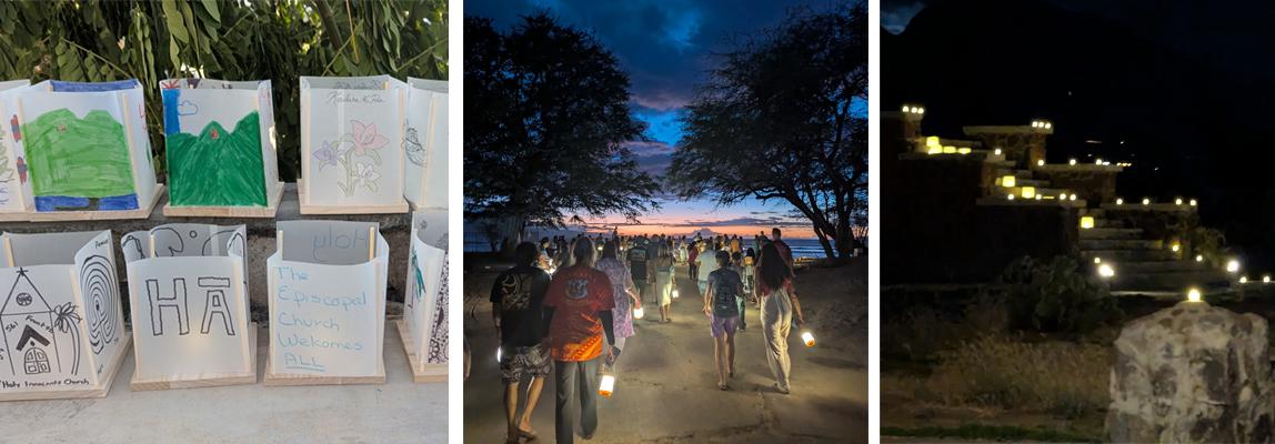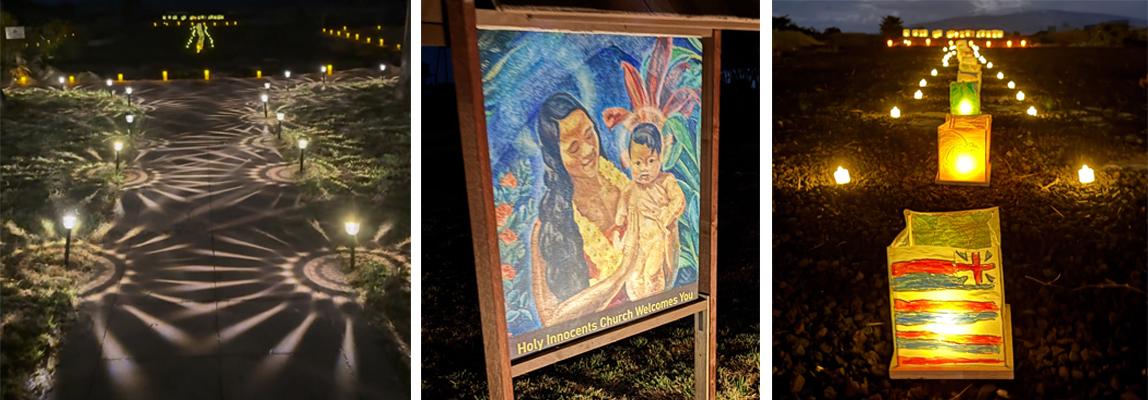 Kalani Holokai, our Maui Community Relations Coordinator, arranged for 100 lanterns to be distributed to our Maui Episcopal Churches that would become a part of the march. Although the path didn't quite reach the Holy Innocents' site, organizers made sure to light up the property (pictured below) with LED lights and lanterns that were decorated by Maui members. The Diocese of Hawai'i also sponsored the Mālama Lani Stargazing activity.
