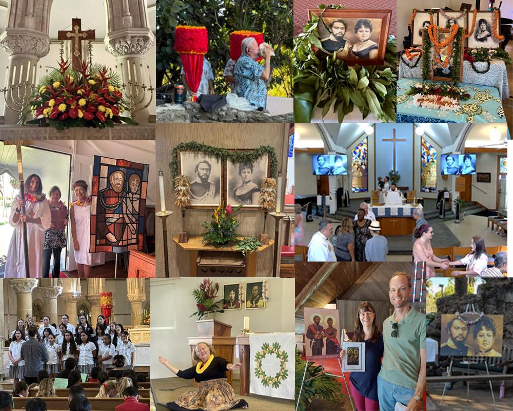 During November, churches (and schools) around the Diocese celebrated The Feast of Our Holy Sovereigns, King Kamehameha IV and Queen Emma. Members of Hawai'i's Royal Societies and Civic organizations turned out for a number of these services. Can you identify the churches in this collage of photos taken from your newsletters and social media?