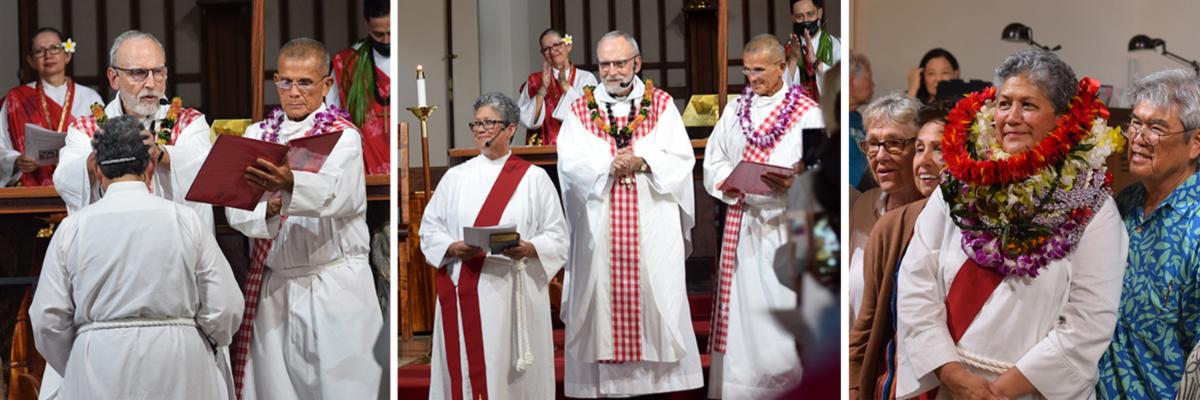 Over a decade later and soon after the 2023 Maui fires, Kalani retired from the County, and would later accept her current Community Relations Coordinator position. With much encouragement to revisit becoming a deacon, Kalani finally completed the journey in October. She has been assigned to serve at Trinity By-the-Sea Episcopal Church in Kihei, which also includes Holy Innocents whose building was destroyed in the Lahaina fire of 2023. For canonical reasons, Holy Innocents was reclassified as a preaching station under the umbrella of Trinity By-the-Sea, but members are able to continue to hold Sunday services at a temporary worship site in Napili.