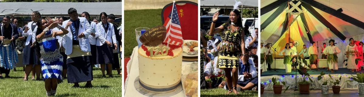 | | The past couple of weeks has been an international escapade for the Bishop. He spent Thanksgiving in Tonga with a contingent of school representatives from the Diocese to celebrate the 120th anniversary of the founding of St. Andrew School in Nuku'alofa. (You may recall that his Thanksgiving message was written during a flight to Tonga.) The days-long celebration was immersed in cultural song and dance, wonderful food, a groundbreaking ceremony, and deepening friendships. | In a Facebook post, the Bishop shared: At the final event of the anniversary celebration of the founding of St. Andrew’s High School, Nuku’alofa, Tonga, the Most Reverend Sione Ulu’ilakepa, Bishop of the Diocese of Polynesia and Archbishop of the Anglican Church in Aotearoa, New Zealand and Polynesia, presented me with this amazing carved fishhook (pictured above far right) with a whale’s tail. The introduction to the presentation noted that it is in honor of my retirement at the end of 2026 and my ministry as a “fisher of men.” I am grateful to his Grace for the gift and, all the more, for the invitation to be here this week. I hope that I have helped renew a long dormant relationship between the Dioceses of Hawai’i and Polynesia with new bonds between schools. | | |