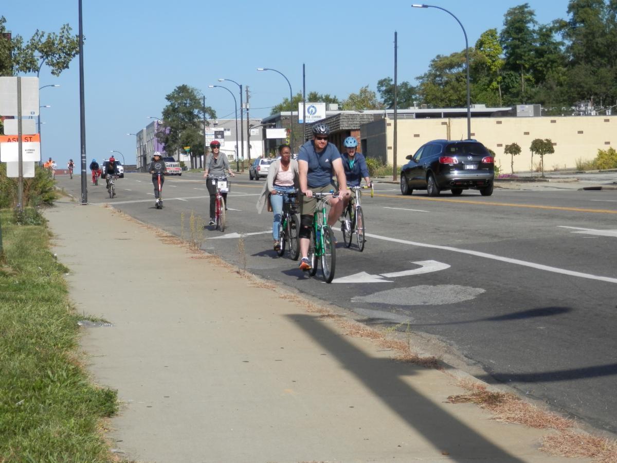 The Middlebury Bike'N'Brainstorm, held on September 23, 2023, was one of the first of many community engagement events for the upcoming expansion of the Rubber City Heritage Trail. AMATS, along with several community partners, hosted a bike ride and brainstorm session to activate the voices of the Middlebury residents. This unique event provided an active platform for residents to engage in the planning process. 10 cyclists, 5 e-scooter riders, and 7 non-riders participated, providing feedback regarding safety, accessibility, barriers and desired amenities for the Rubber City Heritage Trail.