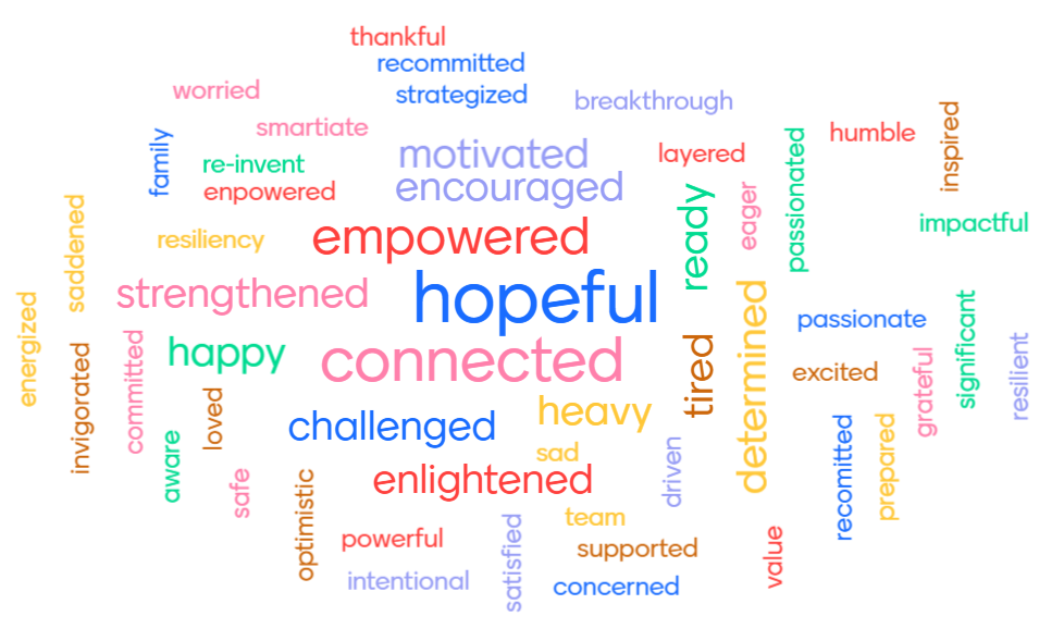 - Above you will find a word cloud created in-session by NLDP graduates who were given the prompt: "Share one word about how you're feeling after today's session."
