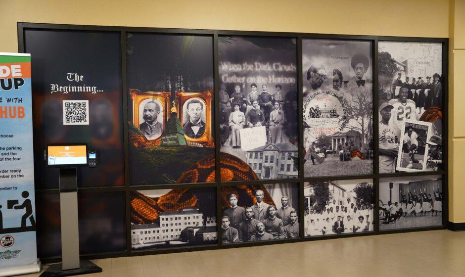 As part of major renovations, the Florida A&M University Bookstore is now decorated with a new mural that illustrates the storied history of FAMU. When envisioning the new look for the bookstore, including representatives from Barnes & Noble, the chain’s design consultant, Business and Auxiliary Services (BAS), and the Office of Facilities, Planning, Construction and Safety, wanted to include design elements that would depict the vibrant, unique, and rich culture of FAMU.