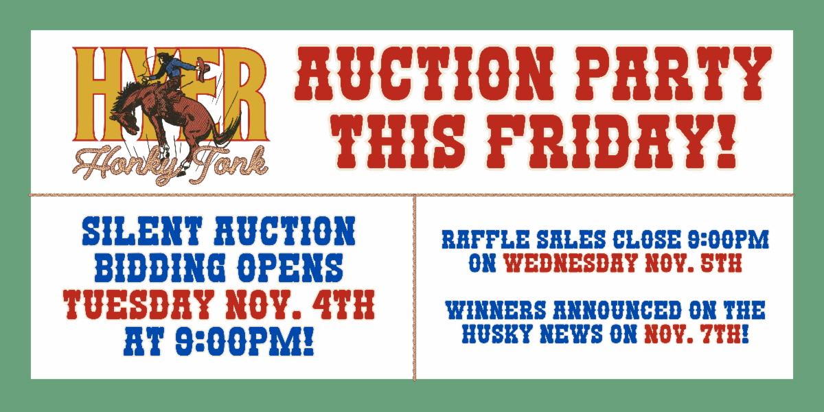 The Silent Auction officially opens Tuesday, November 4th at 9 PM — and you’ll want to act fast! Parent party spots and some coveted headbands will go quickly, while other items will be hotly contested right up until the final close on Sunday, November 9th at 9 PM! Be on the lookout Tuesday for a Husky Herald Special Edition with more information!