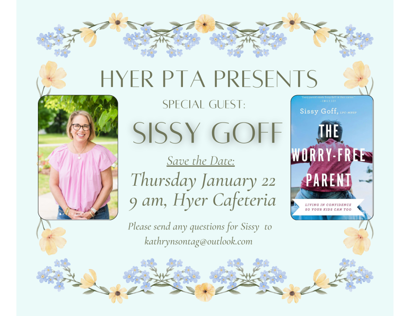 - Thank you Kathryn Sontag for bringing in legendary speaker - Sissy Goff - to Hyer! We are so excited to host her and soak up her wisdom on parenting!
