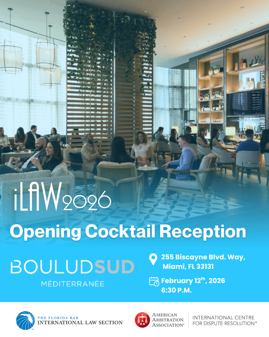 Join us on February 12, 2026, 6:30 pm, at the Opening Cocktail Reception for iLaw 2026 at Boulud Sud.
