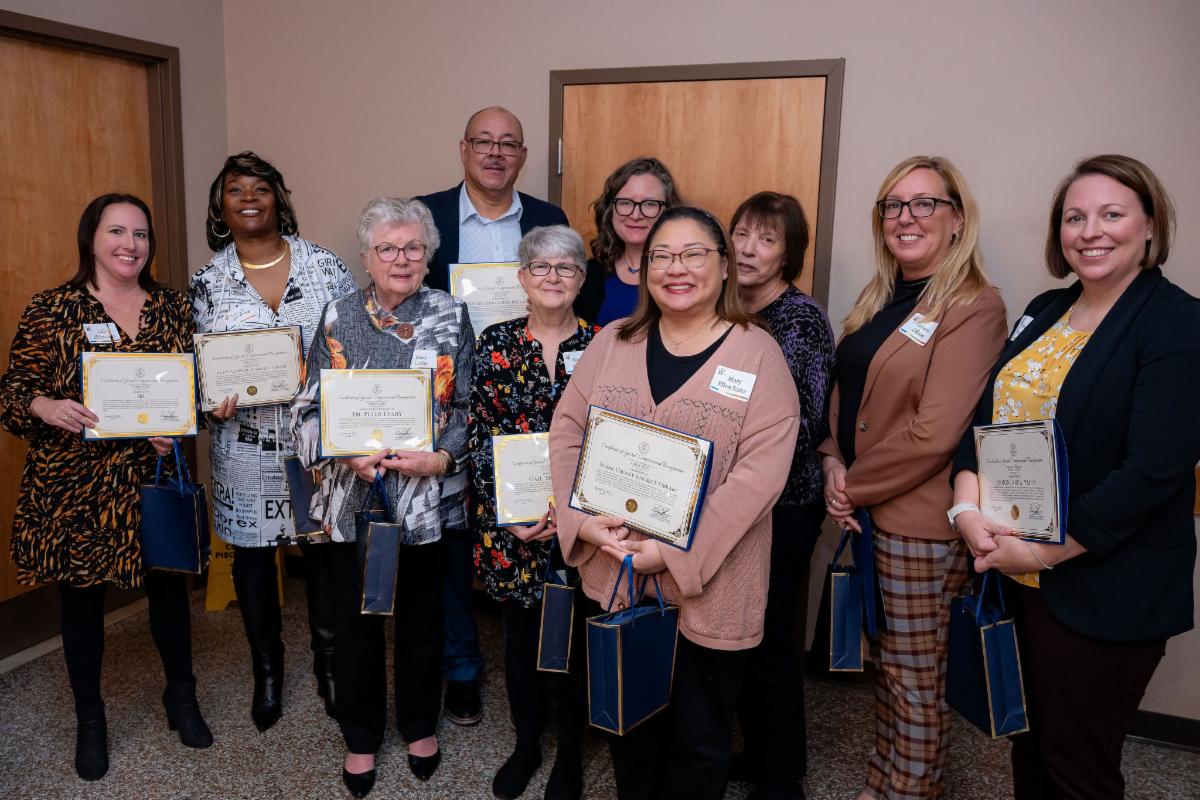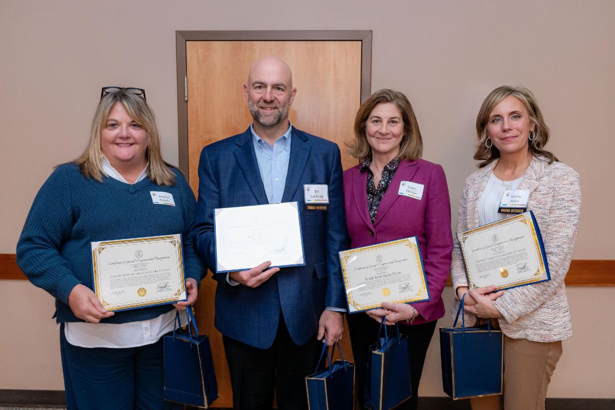 | | Above are representatives from our community partner honorees, including Julie Abiecunas of JRC, Beth Kelley of the Akron YMCA, David James of Summit Education Initiative, Gail Montana, Mary Leahy & Elizabeth Coldren (accepting on behalf of the late Dr. Peter Leahy), Mary Ellen Icaza of Stark County District Library, Dr. Cecilia Schweitzer of Psychological & Educational Solutions, Linnea Olbon of Canton City School District, and Tracy Jordan of Happy Campers. | Pictured above are advocate honorees Vicki Conley and Sister Judith Ann Karam. (Not present: Joni Close.) | Above are representatives from our community funder honorees, including Angela Perisic of United Way of Greater Stark County, Joseph Luckring of PNC, Laura DiCola of GAR Foundation, and Marisa Rohn of Sisters of Charity Health Foundation. (Not present: representatives from the Deuble Foundation.) | | |