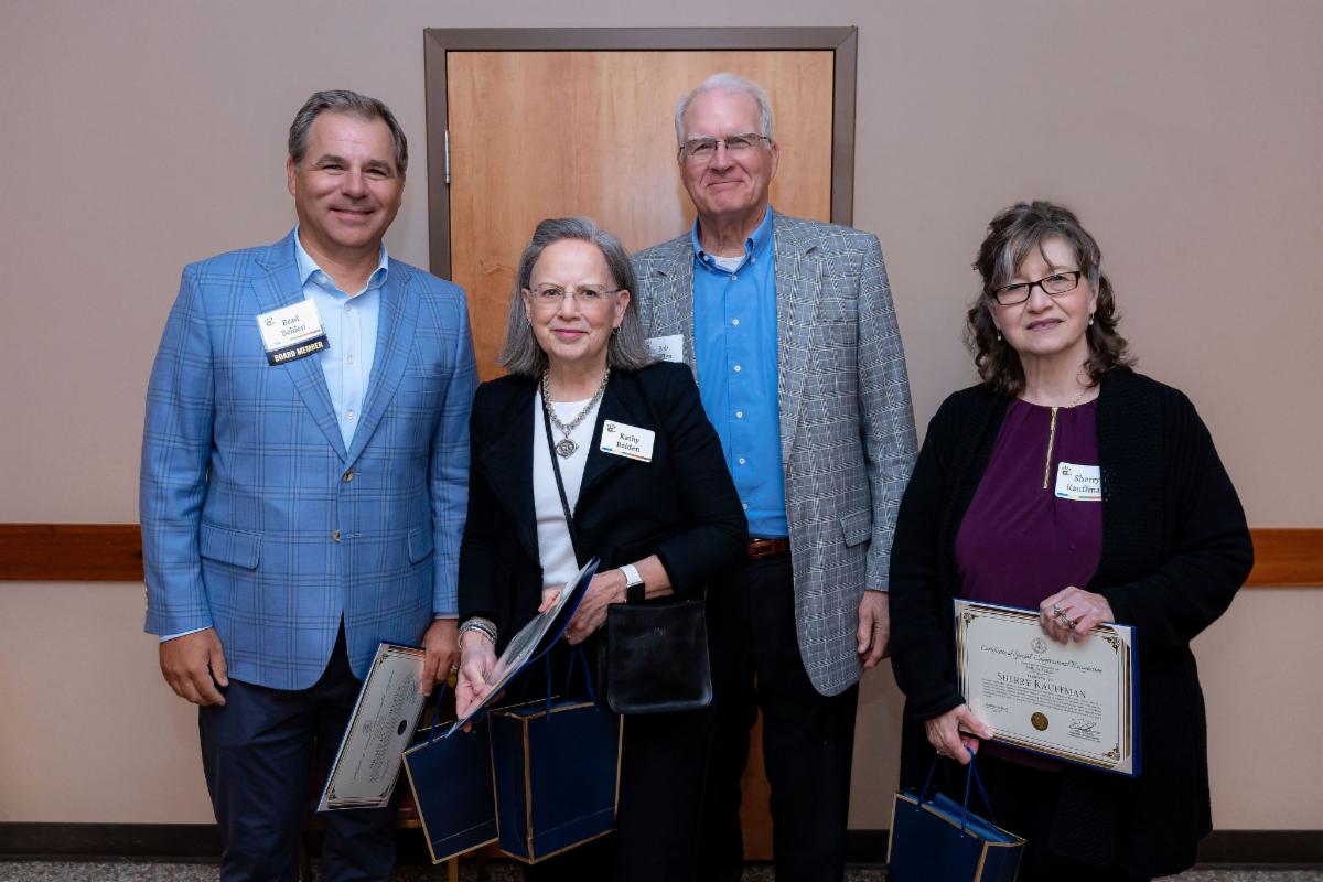 | Above are representatives our long-time volunteer honorees and donors, including Brad Belden, Robert & Kathy Belden, and Sherry Kauffman. | |