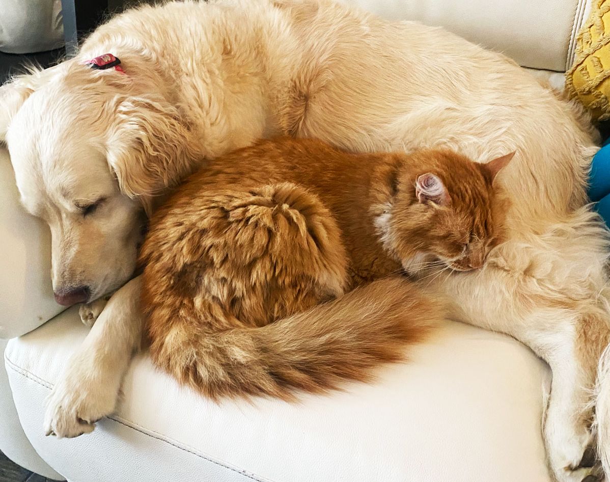 After Woody, things really snowballed. Dexter, my beloved golden retriever, passed away, and Jayden and I hit the road to pick up Ivy, our next golden. Then, I asked Jayden, “Hey, want to get a baby chick?”—and before I knew it, we were bringing home four. Next, a trip to Canton introduced us to Henry, a lop-eared bunny we just couldn’t resist. Soon, I had adopted two feral cats who needed a home, and finally, we added Sky, Ivy’s sister, to the mix.