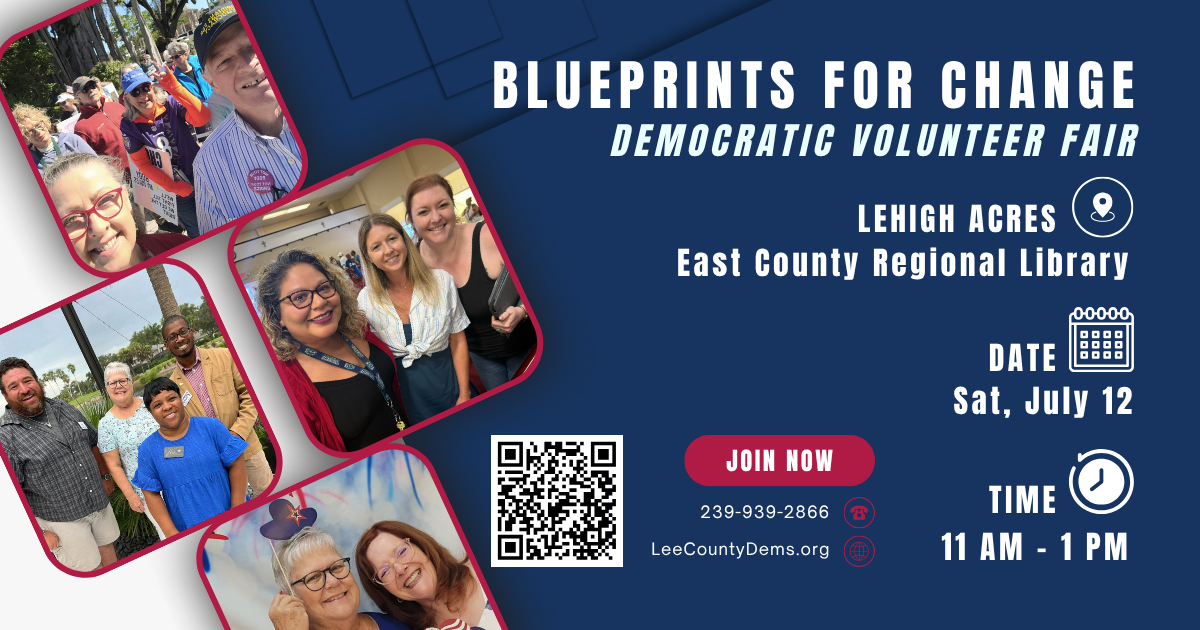 As part of the effort to reach out to nearby residents, the Lehigh Acres Democratic Club will participate in a Lehigh Acres Day of Action on Saturday, July 12. The Day of Action will be an Expo where people can meet up with other Democrats who share their values and interests. Attendees will be able to check out different organized groups like the Democratic Women’s Club, the Environmental, LGBTQ+, and Labor Caucuses as well as clubs like the Lehigh Acres Club. Participants will learn where the Party needs volunteers and how to sign up to help out. The Day of Action will start at 11:00am and run until 1:30pm at East County Regional Library 881 Gunnery Rd. N, Lehigh Acres, FL 33971, USA. Read more