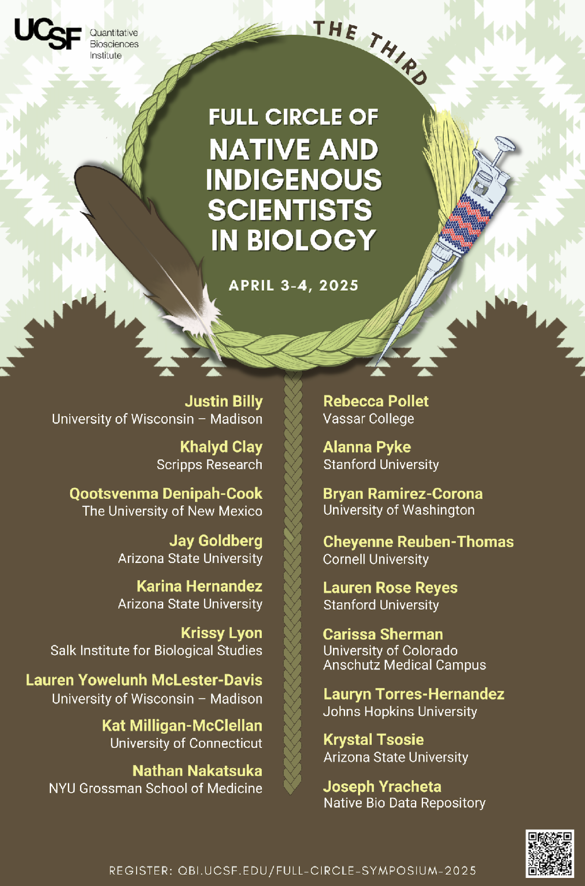 I’m writing to invite you to the UCSF’s 3rd annual “Full Circle of Native and Indigenous Scientists in Biology” symposium on April 3-4 17 2025 at UCSF Mission Bay.