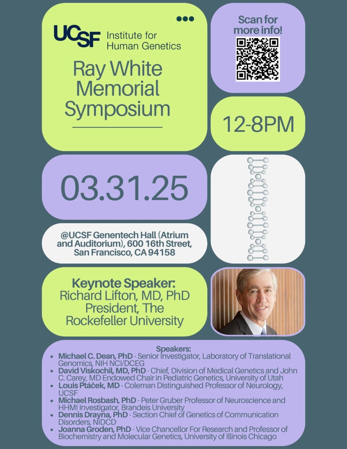 | | | | Ray White’s pioneering work was the foundation for modern human genetics, which has transformed our understanding of virtually every human disease. Ray proposed to develop complete human genome maps using DNA variation as markers for localizing and cloning human disease genes. He played a seminal role in the technical development of these human genetic maps, including collection of the family mapping set universally employed for map development—the first example of a distributed resource enabling broad international collaboration on a biological problem. He pioneered application of this technology to map and identify human disease genes. These included the first molecular confirmation of Knudsen’s tumor suppressor hypothesis, that one “retinoblastoma gene” copy is often lost during tumorigenesis, and the realization that many cancer genes act as tumor suppressors where both copies of the gene must be inactivated. White’s lab mapped and identified many important human disease genes. In addition, Ray also left a legacy in the generation of young scientists and physician scientists that he trained and have gone on to discover genes underlying a broad array of human diseases and normal behaviors. | | Mapping the Human Body One Cell at a Time | | Scientific publishing: an insider's view | | What we can learn from asking big and small questions in complex trait genetics | | The role of silencer variants in human diseases | | AI tool based on one herpes virus predicts viral and host enhancers | | NamiRNA and UCOM, Novel Epigenetic Regulators and Precision Practices | | Craniofacial transcription enhancers and their role in craniosynostosis | | Technology Seminar Series | | |
