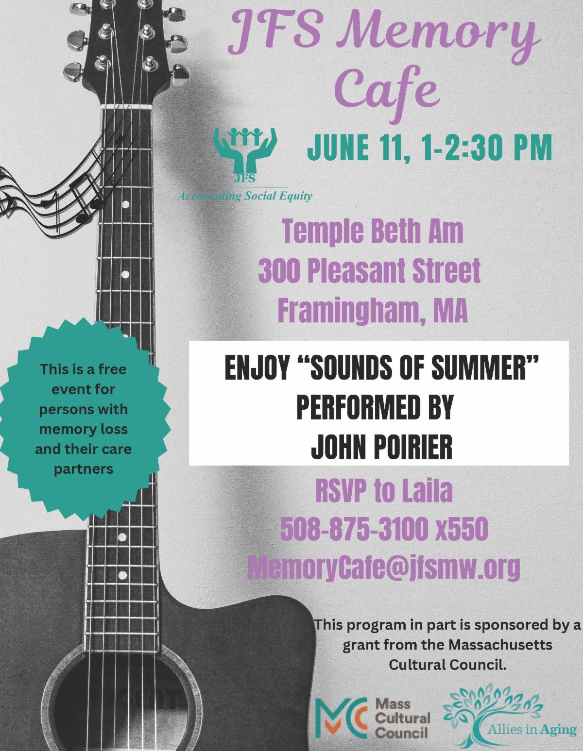 RSVP today! Call 508-875-3100 x 550 or email memorycafe@jfsmw.org to reserve your spot.