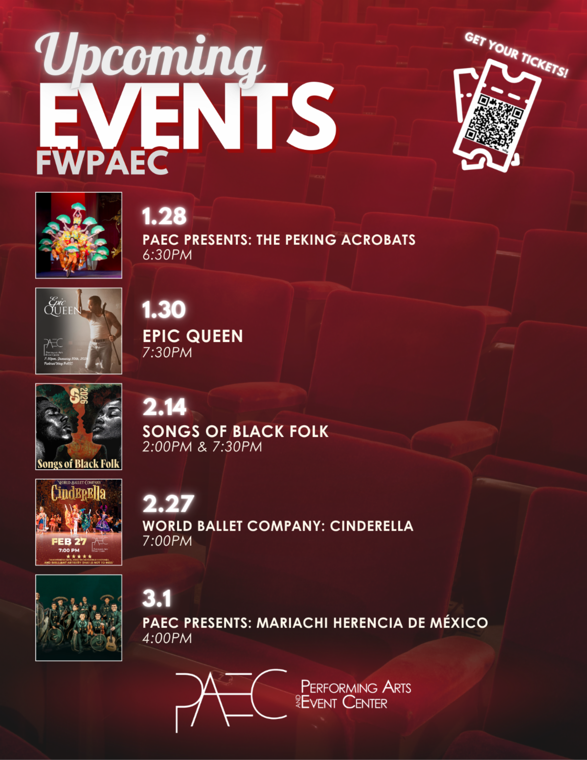 The Federal Way Performing Arts & Event Center (PAEC) puts on a wide variety of events year-round. Upcoming events include:
