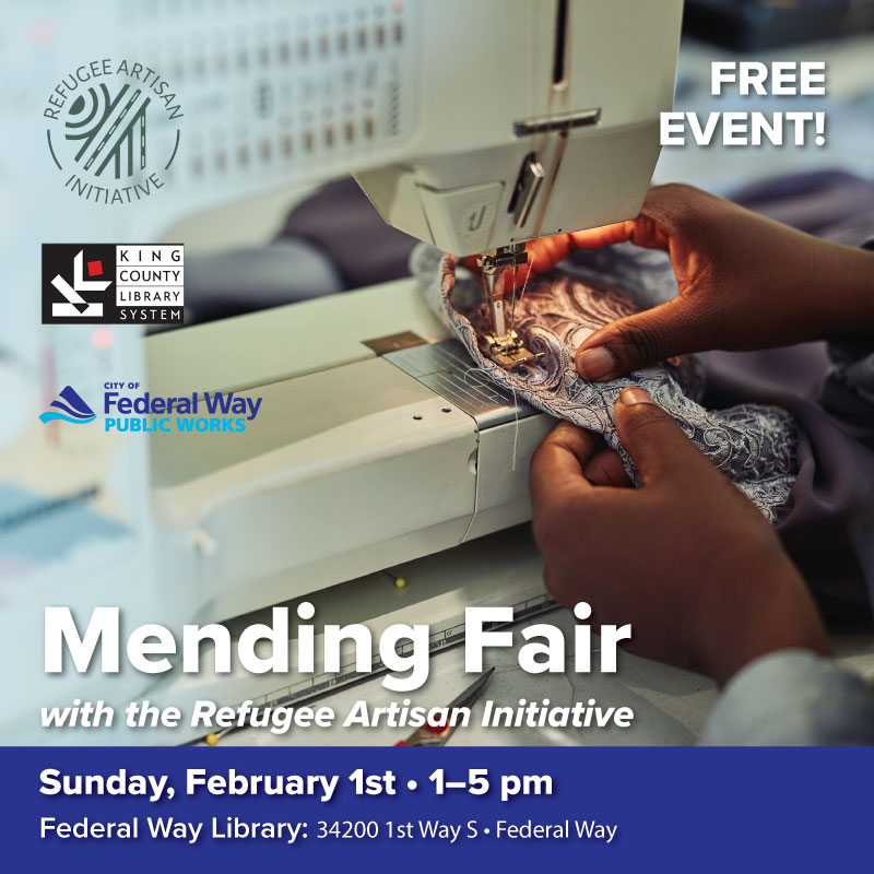 Join the City of Federal Way, King County Library System, and the Refugee Artisan Initiative for a FREE Mending Fair on Sunday, Feb. 1, at the Federal Way Library.