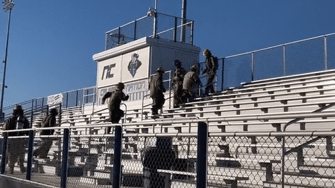 NCS Fire Science program taking steps towards success. Since the program started less than ten years ago, just over forty Northwest Christian grads have gone directly from high school and into positions within various fire departments around the valley. "The program was started by Craig Kempinski and Dave Cruse, a former Glendale fire captain," explains NCS superintendent Geoff Brown. "In just ten year's time, the NCS program has earned the reputation of being one of the preeminent fire training programs in the state. It was started and is currently facilitated by numerous first responders who allow for rigorous and authentic experiences that qualify our students. I appreciate the fact also that students can graduate from our high school program, immediately get hired, and then allow for their department to underwrite their bachelors degrees." In the picture above, NCS Fire Science students are wearing full fire protective gear--some with masks and oxygen tanks--and running steps on the bleachers...all to get a sense of the strenuous demands of the job. | |
