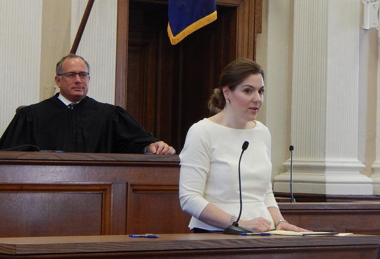 The ceremony, held in historic Courtroom One of the Franklin County Courthouse, included words of advice to the new admittees from the Honorable Angela R. Krom, Pennsylvania Bar Association President Sara Austin, Franklin County Bar Association President Mary Beth Shank and Young Lawyers Division Chair Tracy Ross.