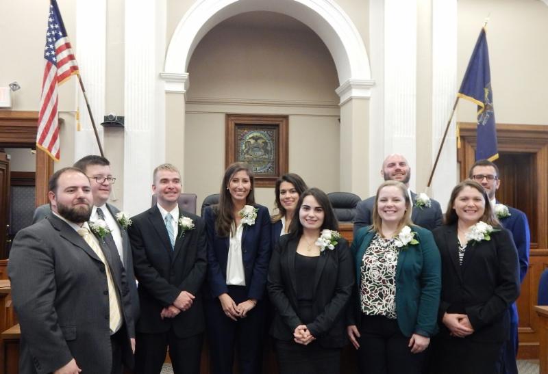 The new members admitted were John B. Keller, of Keller, Keller and Beck, LLC; Alex Sharpe, of Sharpe and Sharpe, LLP; Bridget Fitzpatrick, Law Clerk for the 39th Judicial District; Victoria Beard, of Greencastle, PA; Clark Stiteler, Assistant District Attorney of the 39th Judicial District; Julie Bateman, Assistant District Attorney of the 39th Judicial District; Nicole Vito, Assistant District Attorney of the 39th Judicial District; Brian Mains, Assistant Public Defender of the 39th Judicial District; Jonathan Foust, Assistant Public Defender of the 39th Judicial District; Simon Gemerek, of Salzmann Hughes, P.C.; and Vienna Vasquez, of Franklin County Legal Services.