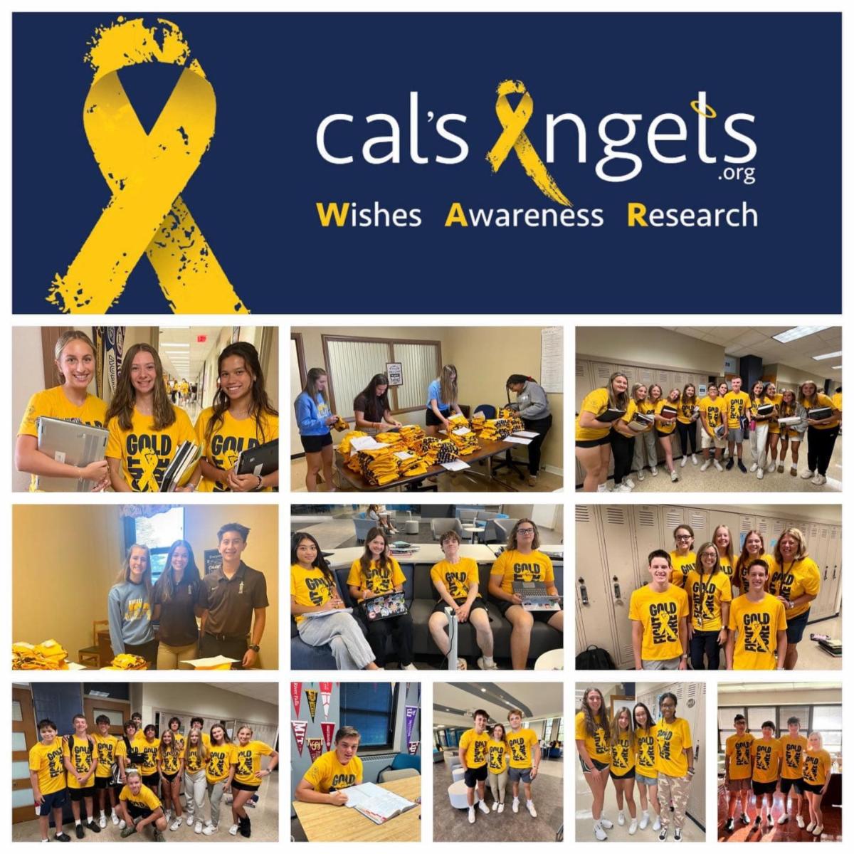 Joliet Catholic Academy's Sophomore Student Council partnered with Cal's Angels by selling t-shirts during the week of August 29th. On Thursday, our halls and classrooms were a sea of gold! At the September 2 home football game vs. Immaculate Conception our Hillzone had a "Gold Out" theme to honor Cal and the foundation's mission. All funds raised went to Cal's Angels, a pediatric cancer foundation with a mission of granting wishes, raising awareness, and funding research to help kids fighting cancer.