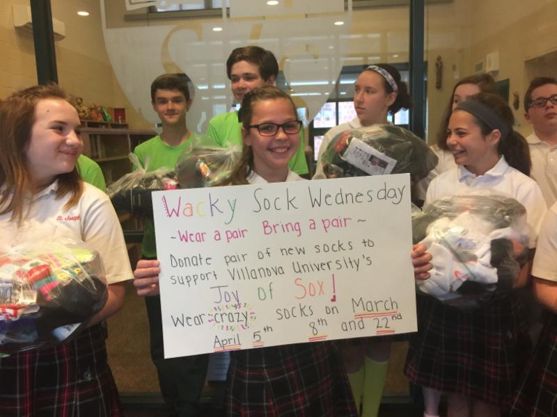Wacky Socks Wednesday. Wear a pair. Bring a pair. Donate a pair of new socks to support Villanova University's The Joy of Sox. Wear crazy socks on March 22, Apr 4, Apr 8."