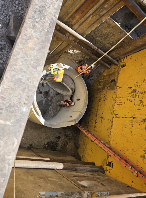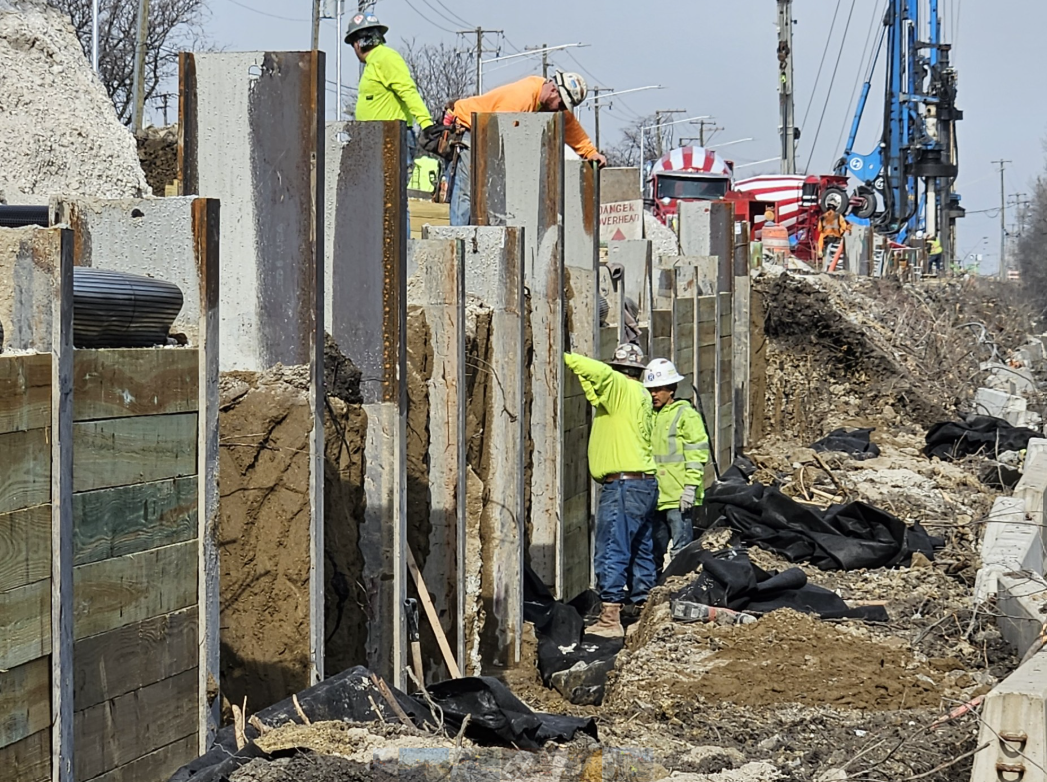 Stage 3 began in the winter of 2023 into 2024 which saw was large scale subcontract work taking place. A 2,000 lineal feet structural drilled shaft soldier pile with PCC Cap retaining wall per Contract was constructed as well.