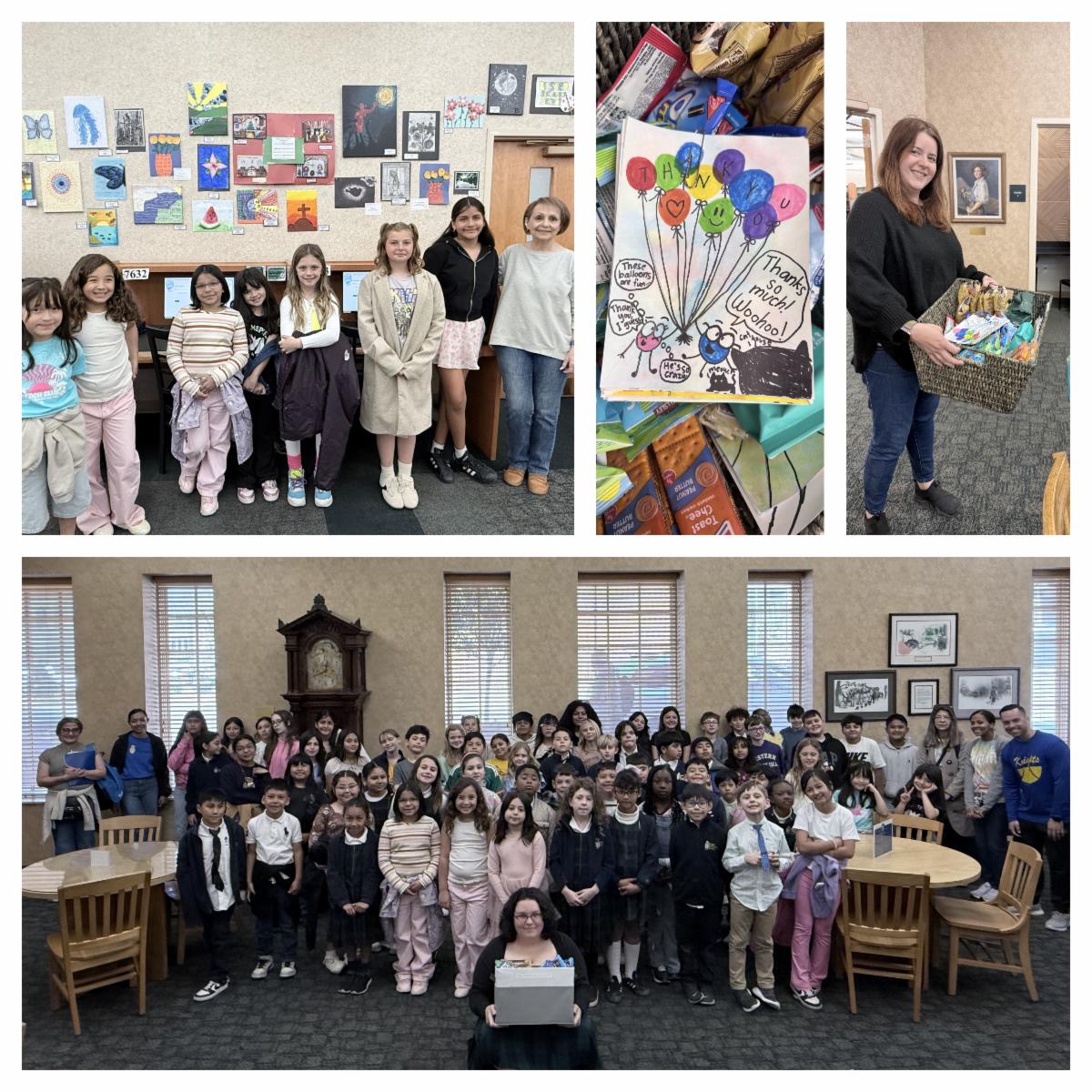 Please see the pictures of our 5th & 2nd graders giving a gift basket & cards for Alamance Partnership for Children, May Memorial Library: