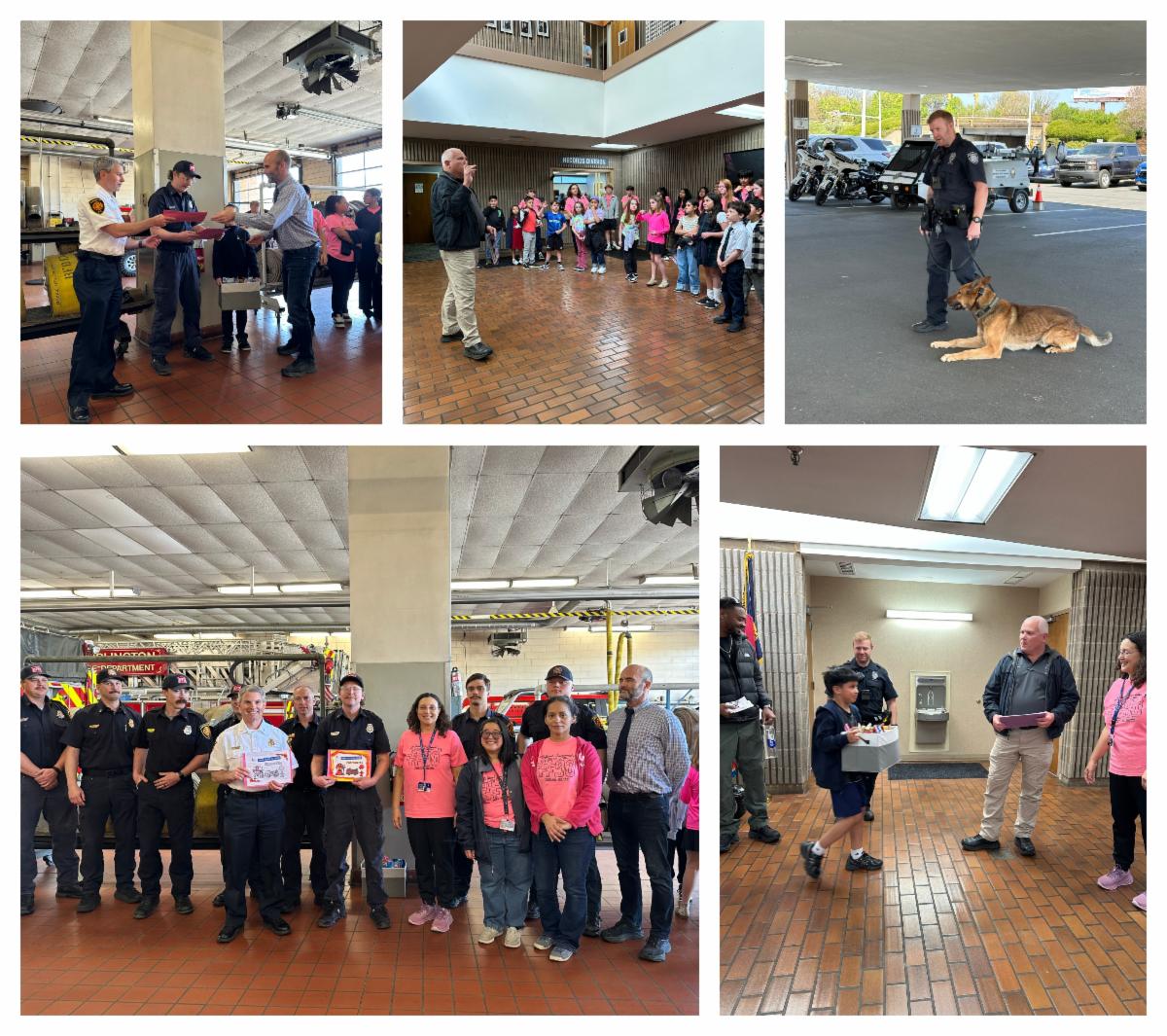 See below, our 3rd graders visiting to the police and fire departments, delivering 2 gift bags and thank you cards:
