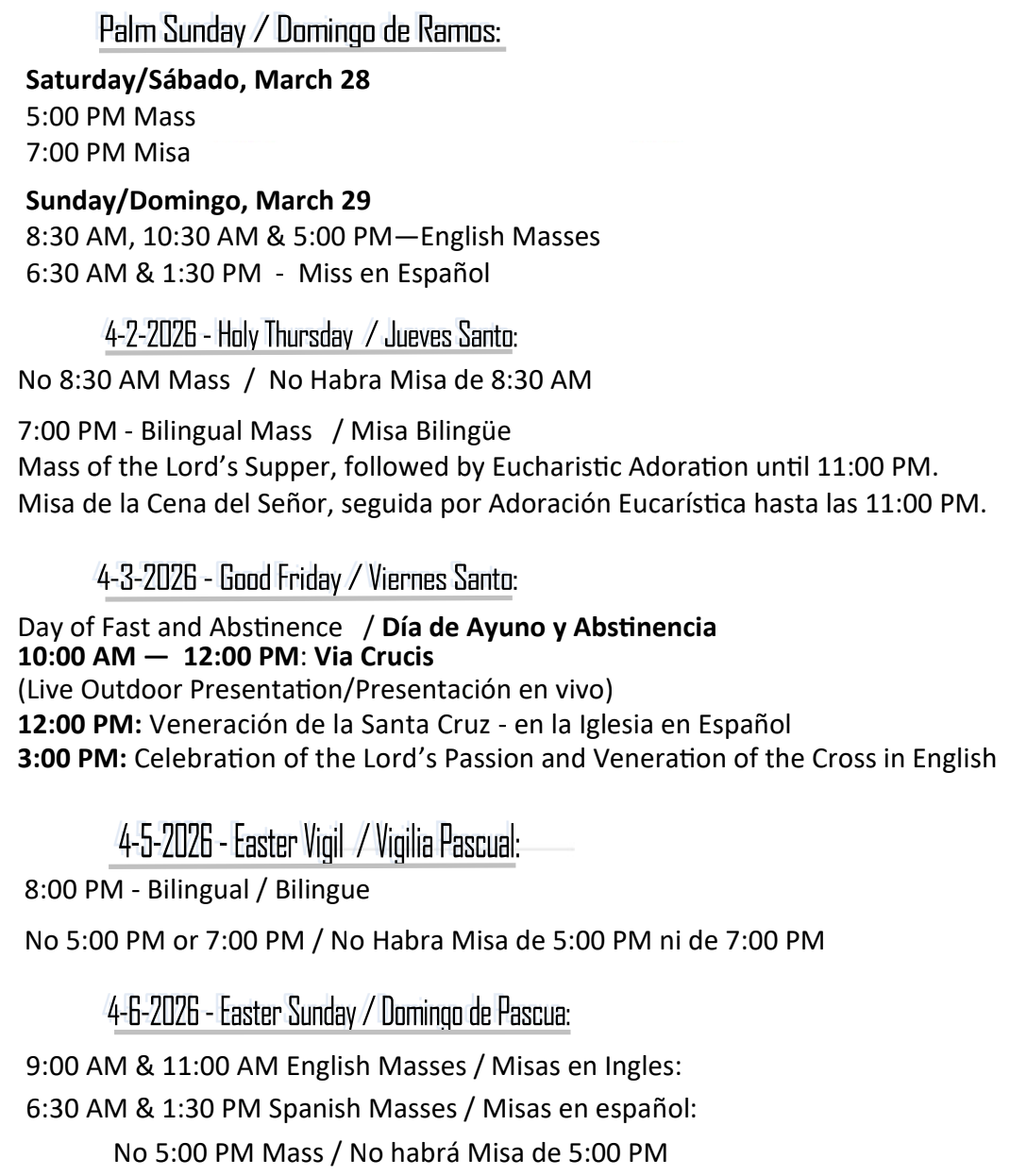 Wednesday, April 1 - 8th Grade Stations of the Cross; Early Dissmisal @ 11:30 pm