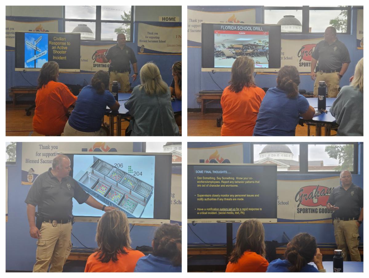 Officer M. Juarez from the Burlington Police Department came to talk to our teachers and staff last Wednesday, September 17th, about a Civilian Response to an Active Shooter Incident to gain more knowledge about things we can all do to have a more protected environment for our school community. Thank you, Officer Juarez, for your work!