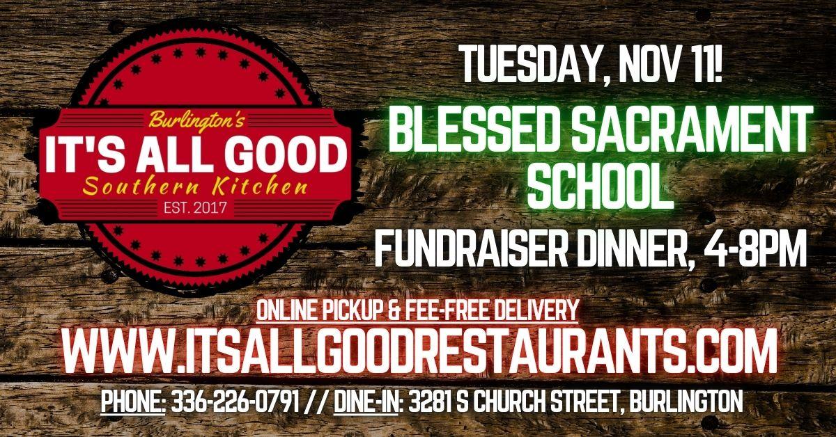 Take a break from cooking on Tuesday, November 11th, and enjoy dinner at It's All Good Southern Kitchen! The restaurant will contribute 15% of qualifying sales from 4PM to 8PM only. Please note that orders through third-party apps are not included due to increased fees. However, pick-up and delivery orders placed directly on their website are eligible; participants should mention they are part of the fundraiser (include this in the special instructions when ordering online). We appreciate your support!