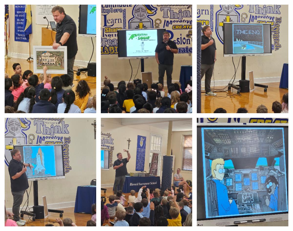 Last Wednesday, October 15, 2025, Jonathan Miller, author of The Adventures of Sammy the Wonder Dachshund!, came to visit Blessed Sacrament Elementary School and talked to our students about his books and illustrations. Our students had lots of questions. All students had an opportunity to buy one of Mr. Miller's books.