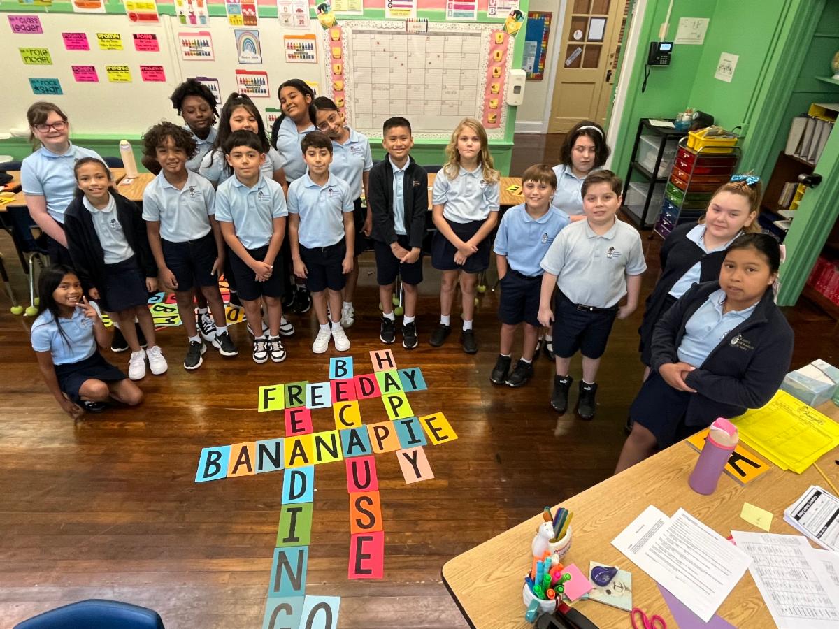 Fourth grade worked hard learning about teamwork while playing giant Scrabble on Friday, August 22nd!
