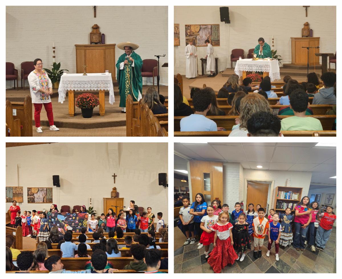 Justo después de la misa, a las 10 a. m., celebramos nuestra tercera celebración anual del Mes de la Herencia Hispana. Tuvimos varias presentaciones y bailes de nuestros estudiantes. Queremos agradecer especialmente a nuestros invitados: el Instituto de Cultura y Artes Huepa y el Mariachi Los Gallos de Carlos García. Agradecemos a nuestros profesores de español y música por ayudar a los estudiantes a prepararse. Un gran agradecimiento a la Sra. Gómez por organizar el programa. Incluso nuestro Superintendente de Escuelas de la Diócesis de Raleigh, Marcelo Eureste, la Superintendente Adjunta Marcia Edge Navarro y la Directora de Marketing y Matrícula, Anna Bragg, vinieron a ver a nuestros estudiantes. Tenemos estudiantes muy talentosos y artísticos. ¡Tenemos la suerte de contar con tantos padres que apoyan a nuestros estudiantes y que vienen a verlos actuar! ¡Muchísimas gracias!
