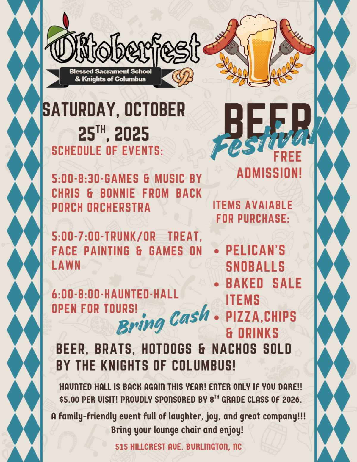 Saturday, October 25 - Oktoberfest! from 5:00 - 8:30 pm 🍨🎂🍭🎉🎊🎈