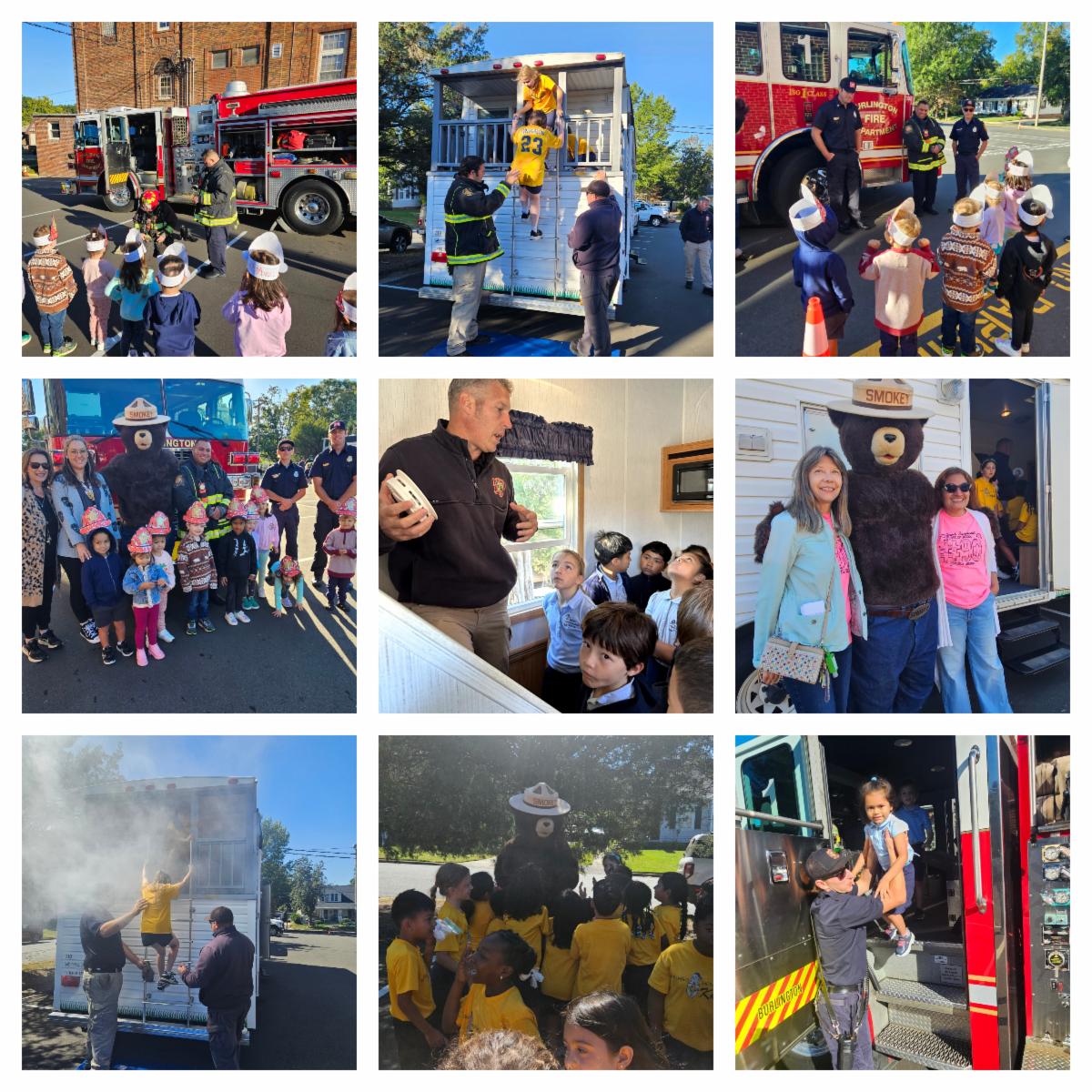 On Thursday, October 9, we held our Fire Prevention Day! We had a visit from the Burlington Fire Department, including Captain Therman Murphy, Lieutenant Blake Hartung, Firefighter Dail Hernandez from Burlington Fire Engine 1, Captain David Sharpe, Captain Tyson Teague, Grayson Shnoffner & County Force Ranger Jean Johnson as Smoky the Bear! The students learned so many things about having a plan just in case of a fire.